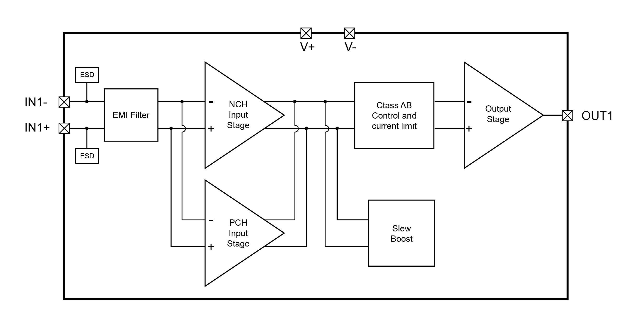 The NSOPA801x/NSOPA801xQ series is a low voltage (1.8 V to 5.5 V), general purpose, low-power operational amplifiers (op amps) with rail-to-rail input and output swing capabilities. These op amps provide a cost-effective solution for low-voltage operation and high capacitive-load drive are required. The capacitive-load drive of the NSOPA801x/NSOPA801xQ series is 1nF, and the resistive open-loop output impedance makes stabilization easier with much higher capacitive loads. The robust design of the NSOPA801x/NSOPA801xQ series simplifies circuit design. The op amps feature unity-gain stability, an integrated RFI and EMI rejection filter, and no-phase reversal in overdrive conditions. Micro-size packages, such as SC70-5, along with industry-standard packages such as SOT23-5L, SOP, MSOP, and TSSOP packages.